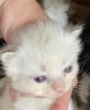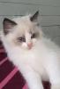 Traditional ragdoll born white and gets tip point color 5 days later. It gets darken based on time. It has blue eyes and is a pointed cat. The gene for a traditional ragdoll is cscs;